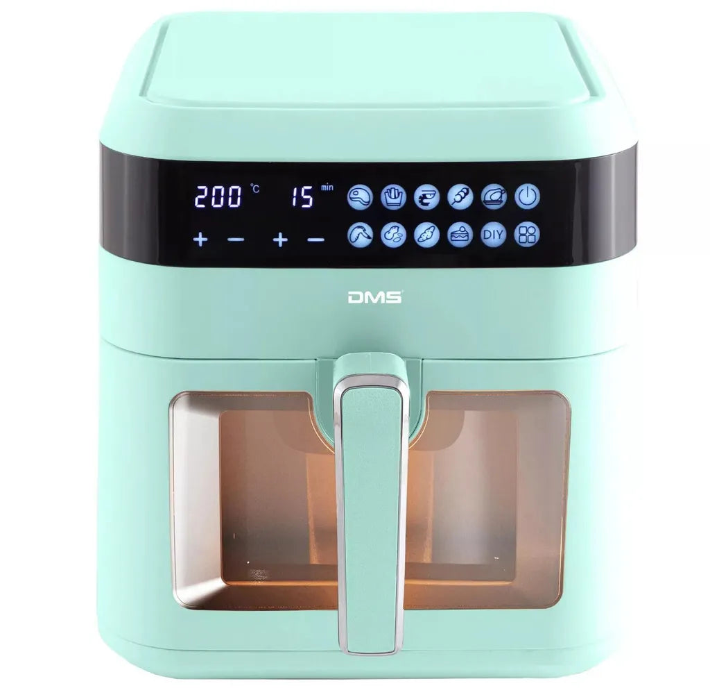 - Die DMS® Heißluftfritteuse mit einem Öl-Fassungsvermögen von 7 Litern eignet sich perfekt zum schonenden Frittieren von Pommes, Hähnchen und vielen anderen Leckereien. Das Edelstahlgehäuse und die Antifhaftbeschichtung machen die Reinigung kinderleicht. Mit der digitalen Anzeige und den 10 Einstellungen/Programmen kann die Temperatur von 50°C bis 200°C und die Kochzeit von bis zu 60 Minuten individuell angepasst werden. Die Heißluftzirkulation sorgt für ein gleichmäßiges Frittierergebnis und der Sicherheits-Mikroschalter sowie die isolierten Griffe gewährleisten eine sichere Nutzung.